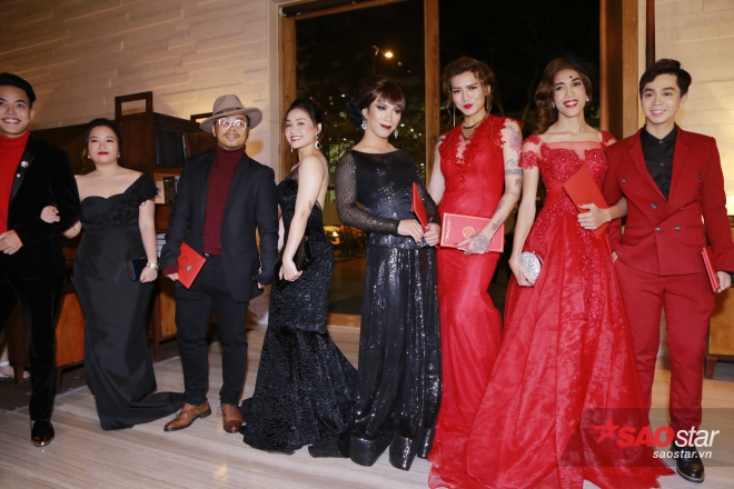 Các nghệ sĩ đều diện trang phục đỏ - đen.