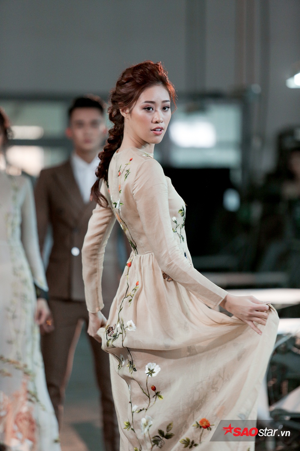 Thần thái cuốn hút khi thử diễn trang phục áo dài giúp Bảo Ngọc được giao diễn Vedette.
