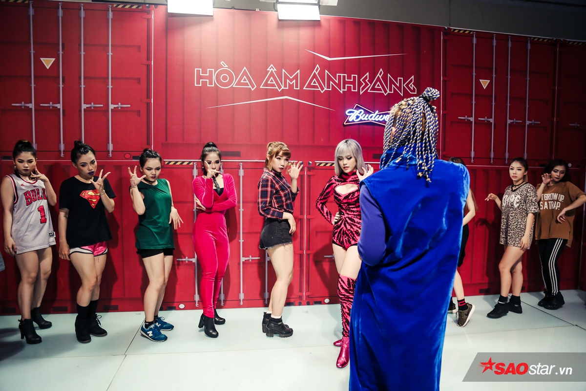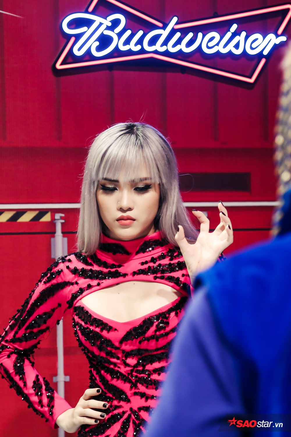 Dễ thấy, Thiều Bảo Trâm đang dồn hết 100% sức lực của mình để “đại chiến” với đàn chị của mình, đơn cử là bên trong hậu trường trước giờ lên sóng, cả team dường như không nghỉ ngơi. Nếu như Phúc Bồ, Hà Lê chăm chú canh chỉnh lại phần âm nhạc thì Bảo Trâm cùng biên đạo Bảo Bảo và cả vũ đoàn lại bất ngờ thay đổi phần vũ đạo của bài hát mở màn. Sự thay đổi vào phút chót có thể mang lại rủi ro, tuy nhiên cả team chọn mạo hiểm để phần trình diễn có thể đến gần hơn với khán giả.