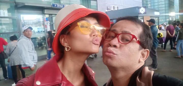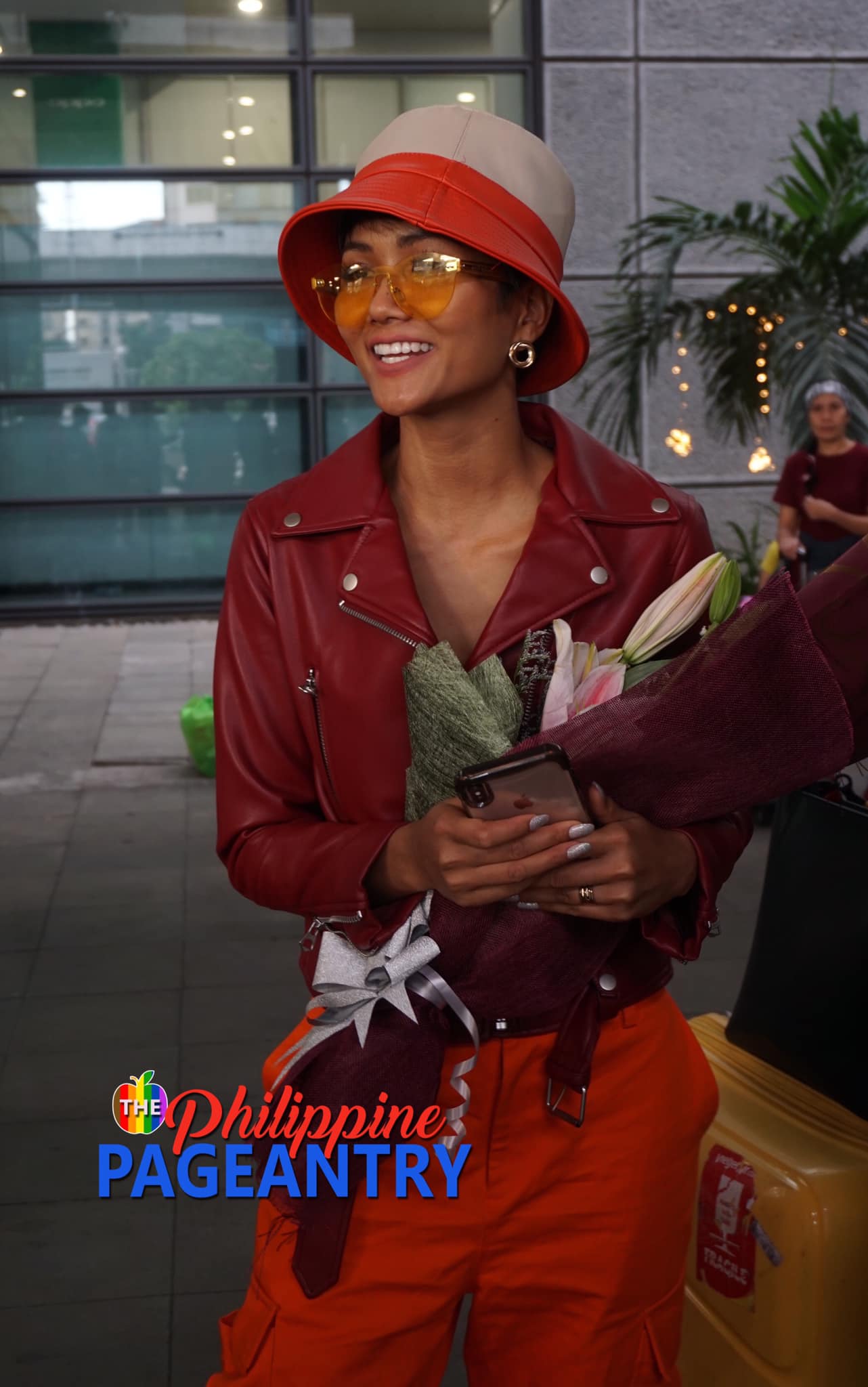 Xuất hiện cực giản dị nhưng vô cùng cá tính với chiếc nón “3 xu”, H'Hen Niê nhanh chóng nhận được sự thu hút từ đám đông người hâm mộ tại Philippines. Người đẹp vừa tranh thủ hoàn thành thủ tục tại sân bay vừa chụp hình lưu niệm cùng các fan hâm mộ. Tại sân bay, Top 5 Miss Universe 2018 cũng có dịp hội ngộ với người thầy từng dạy catwalk cho mình.