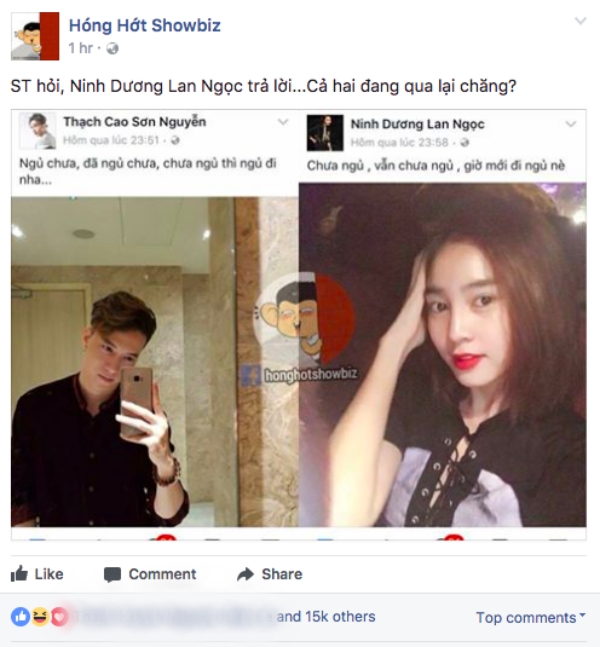 Chú thích ảnh, thời gian đăng bài của S.T và Lan Ngọc đều khiến fan cảm thấy “mờ ám”.