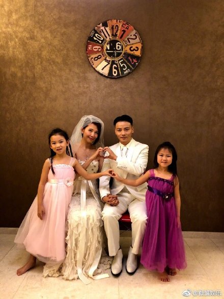 Trương Tấn còn đăng kèm hai hình ảnh, một tấm là Thái Thiếu Phân sau khi sinh bé trai xong và là ảnh chụp đại gia đình, hai vợ chồng ngồi sau để hai con gái ngồi ở phía trước; tấm thứ hai là bàn tay nhỏ của bé đang cầm ngón tay của người lớn.