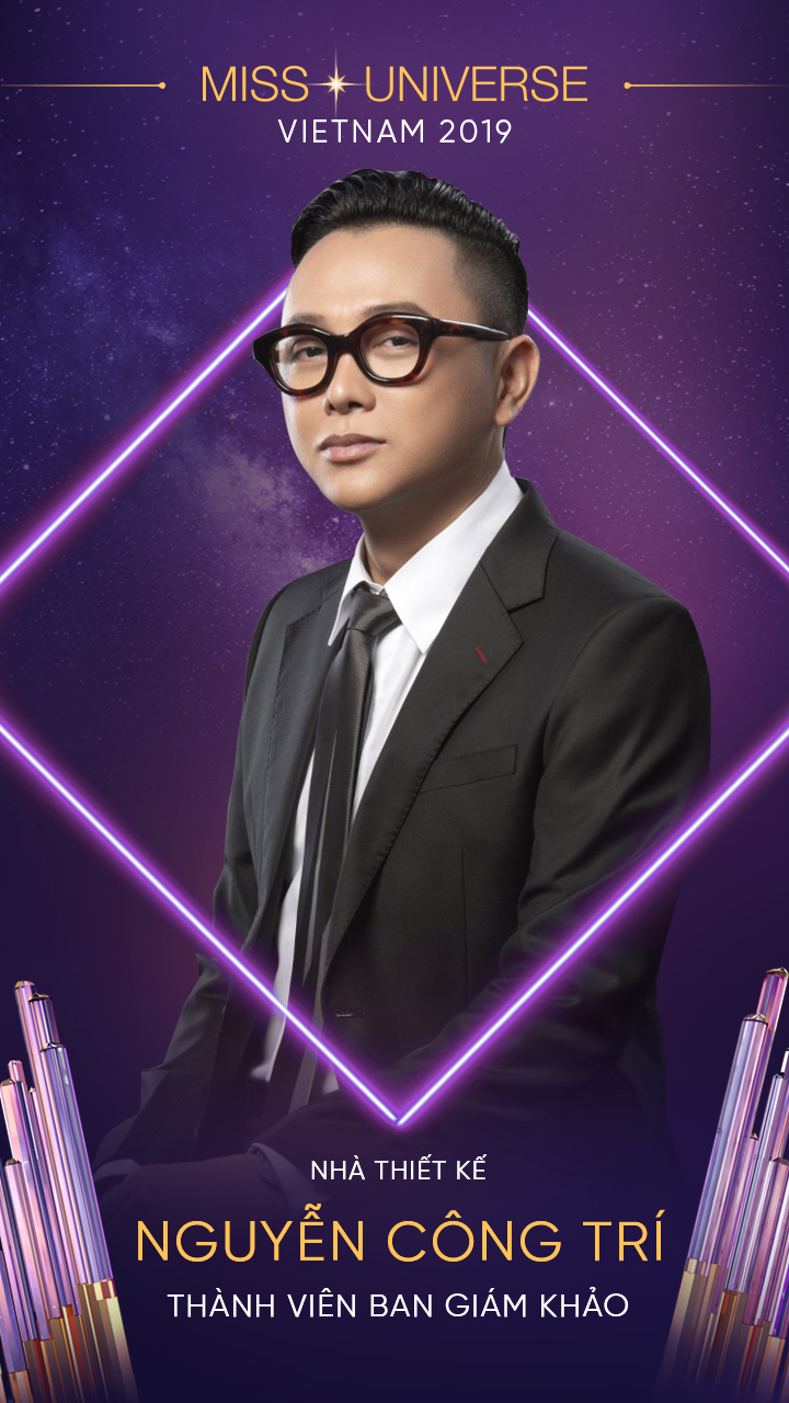Nhà thiết kế Công Trí sở hữu các thương hiệu thời trang nổi tiếng tại Việt Nam và được các sao quốc tế nổi tiếng lựa chọn trang phục như: Rihanna, Katy Perry… Năm 2014, NTK Nguyễn Công Trí vinh dự là ủy viên của Hiệp hội Thời trang châu Á, là một trong 100 nhà thiết kế Haute Couture đương đại. Với kinh nghiệm nhiều năm trong lĩnh vực thời trang, NTK Nguyễn Công Trí sẽ hỗ trợ và định hướng tuyển chọn gương mặt phù hợp tiêu chí cuộc thi Hoa hậu Hoàn vũ Việt Nam 2019.