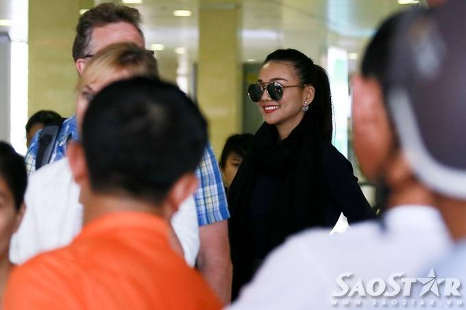 Thanh Hằng vẫy chào người hâm mộ trước khi rời sân bay về nhà.