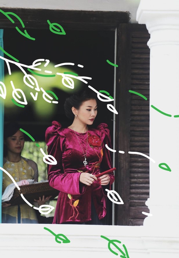 Không phải là hình ảnh lộng lẫy trên sàn catwalk, Thanh Hằng chọn nhân vật Ba Trân làm khoảnh khắc đáng nhớ cho năm 2017. Bộ phim Mẹ chồng không chỉ đánh dấu sự trở lại của siêu mẫu sau nhiều năm vắng bóng ở địa hạt điện ảnh mà còn cho thấy sự trưởng thành rõ nét ở cô qua thần thái và khả năng diễn xuất. Bút S Pen trên Galaxy Note8 hoàn thành xuất sắc vai trò tô điểm không gian của bức ảnh bằng những nét vẽ tay đơn giản nhưng không kém phần ấn tượng.