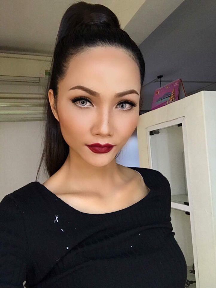 Mái tóc dài nhuộm vàng uống lượn kết hợp đôi gò má cao như gái tây.