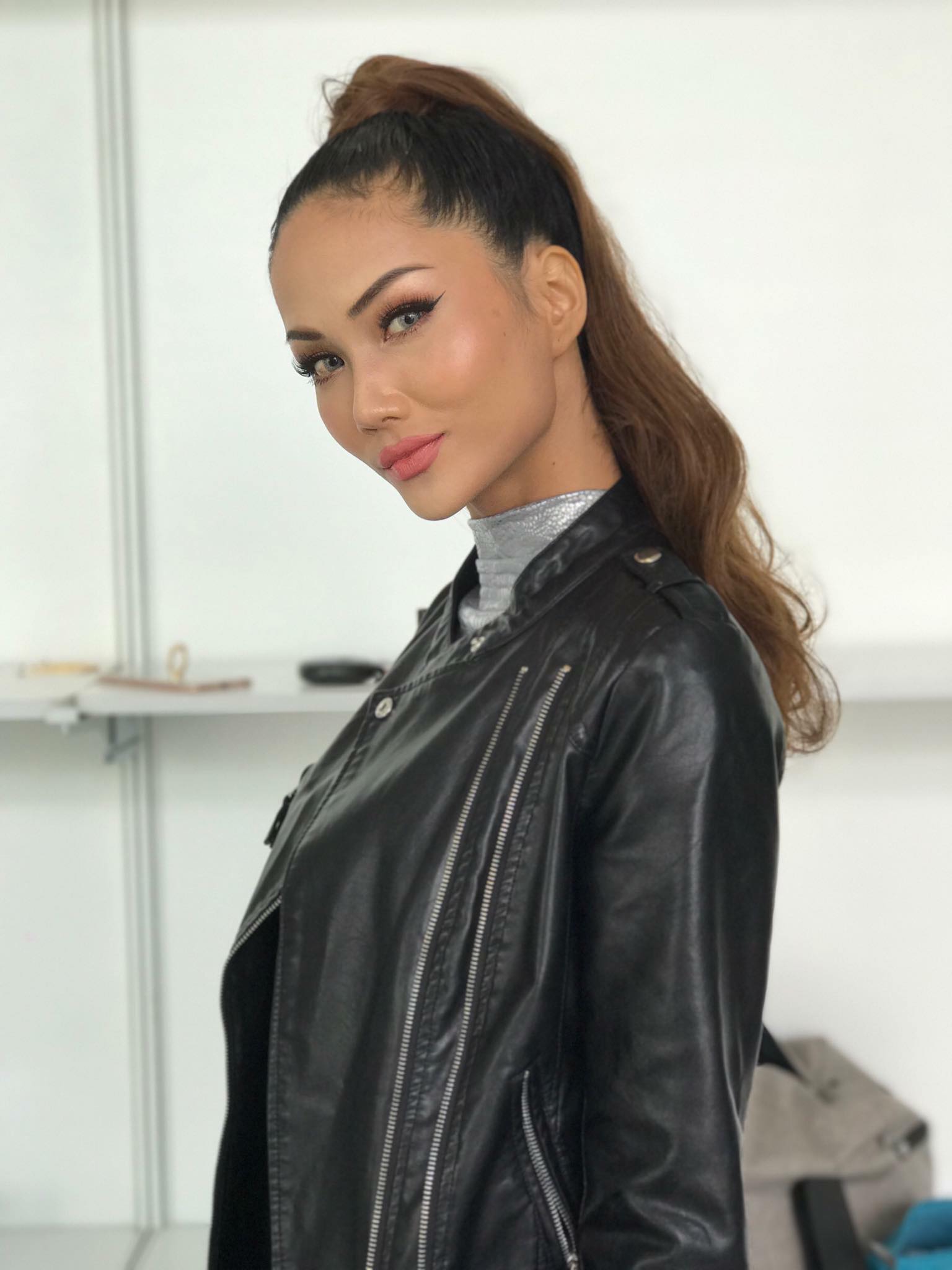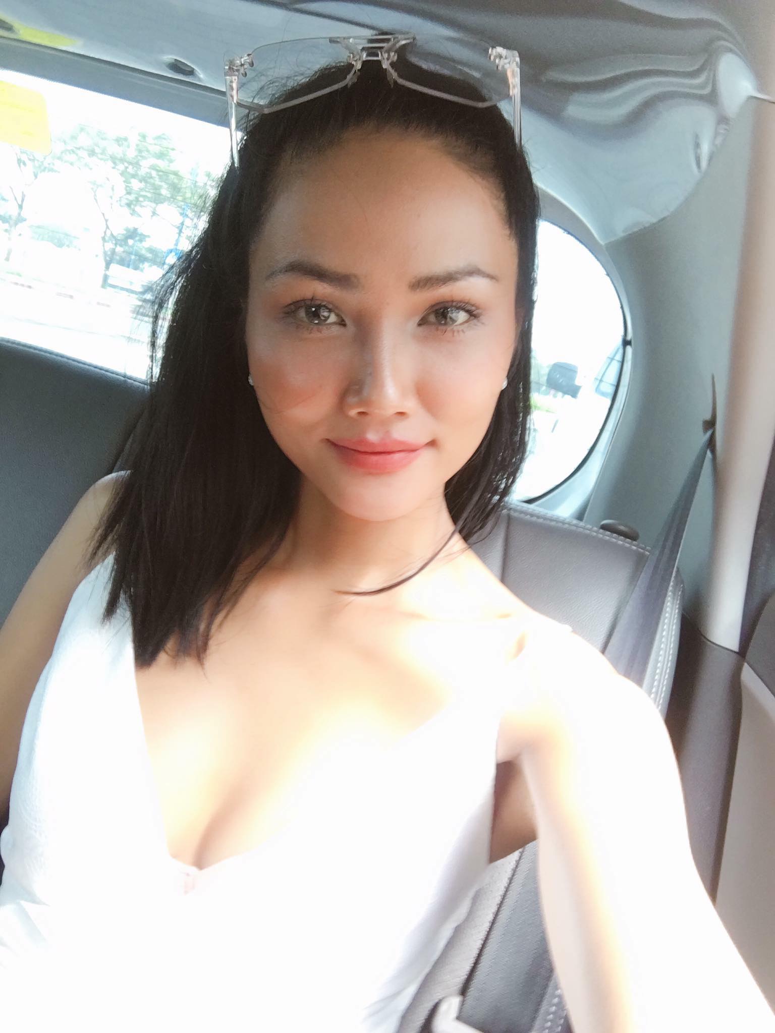 Mái tóc dài được người đẹp chăm chút kĩ càng thẳng nuột.