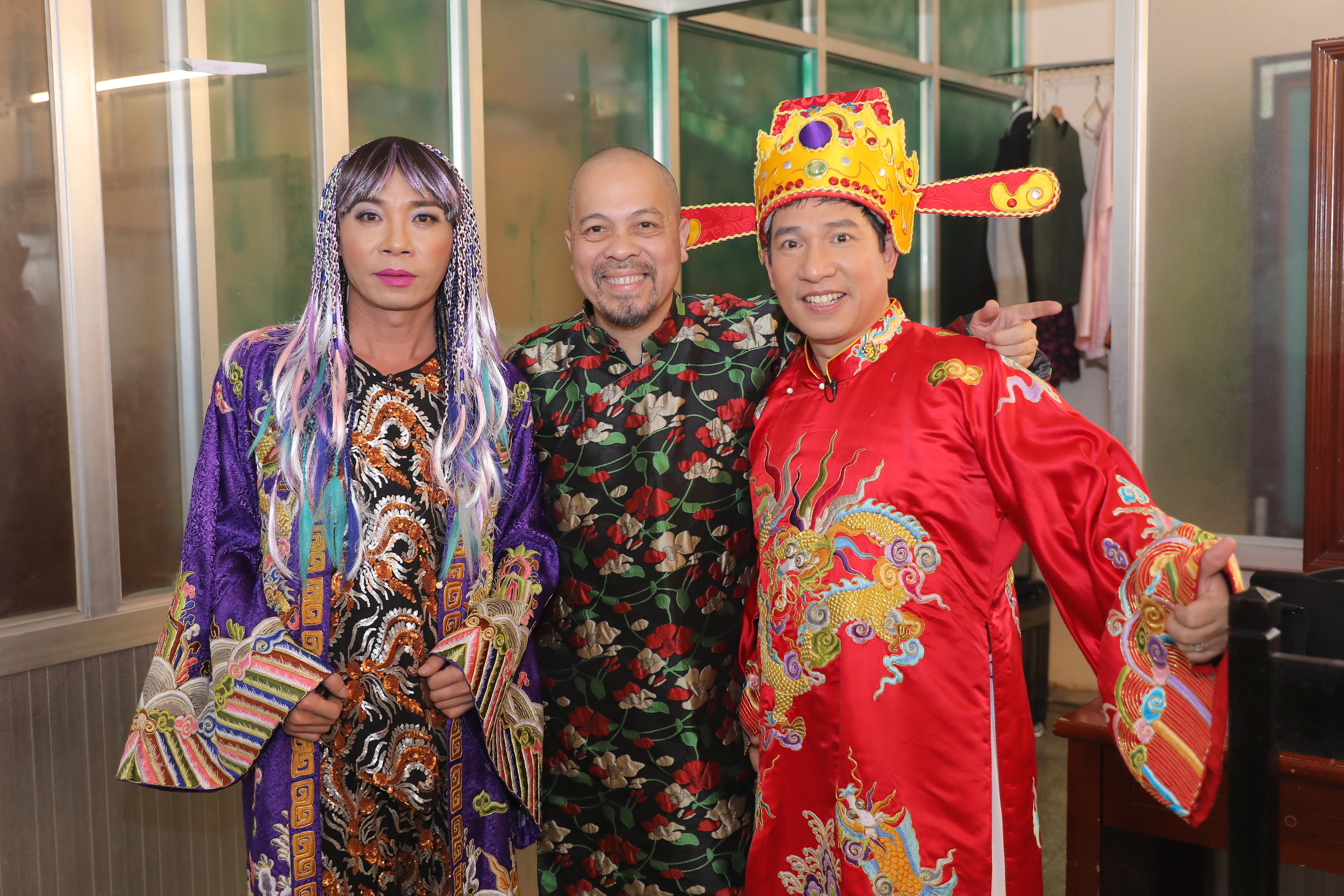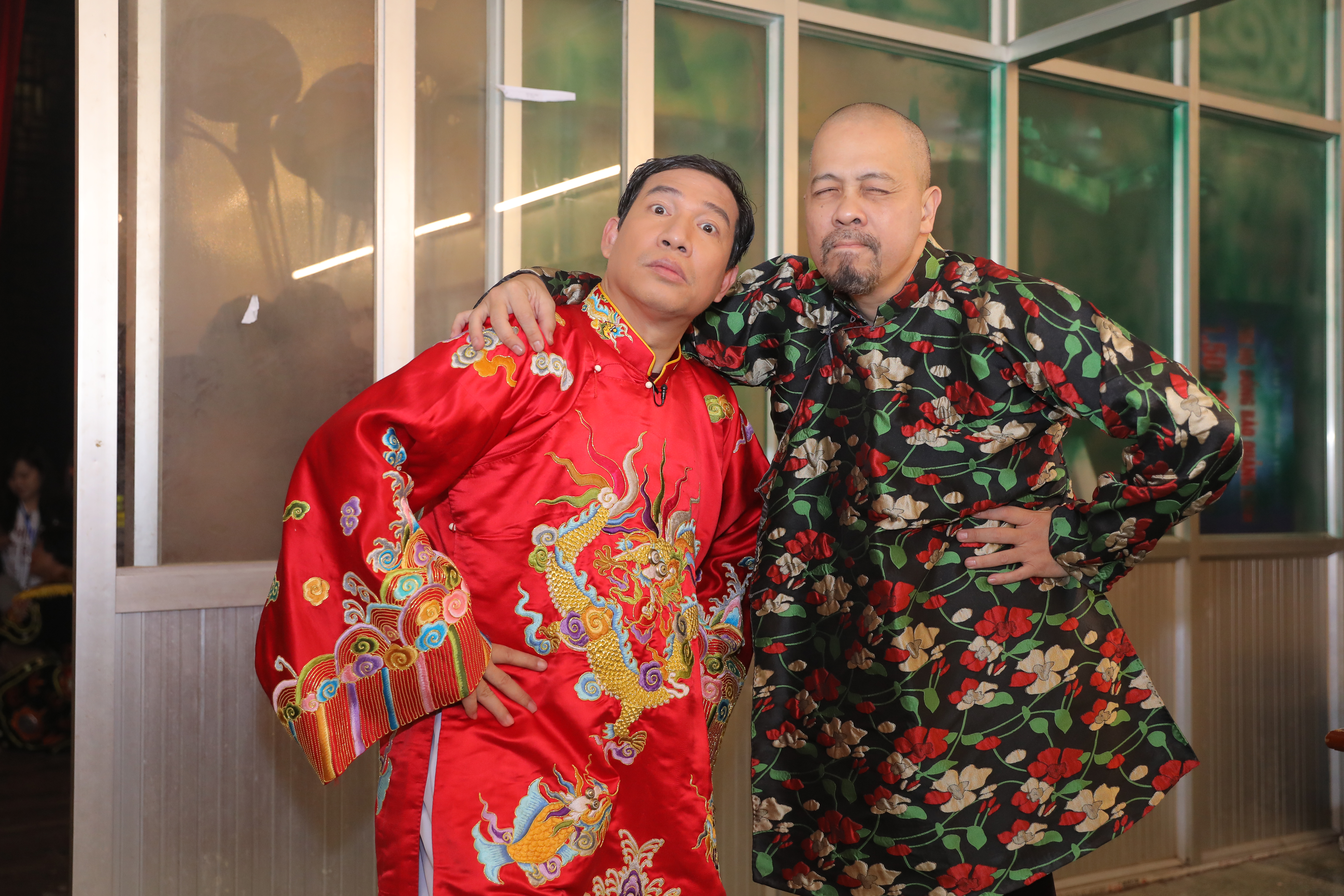 Biểu cảm hài hước của Tự Long và NTK Đức Hùng trong hậu trường.
