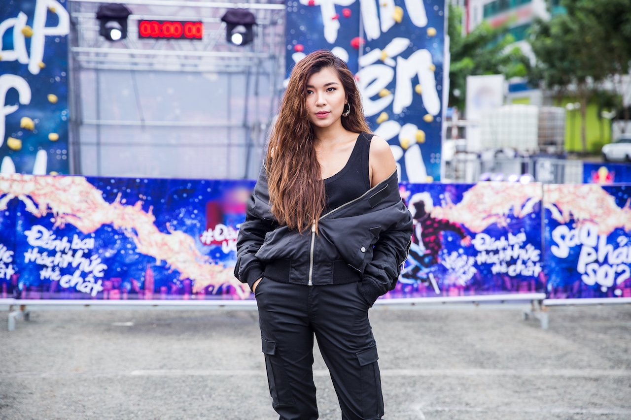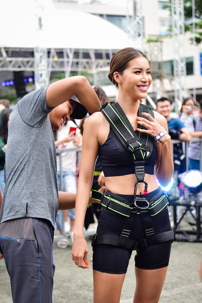 Minh Tú chuẩn bị tham gia trò chơi mạo hiểm.