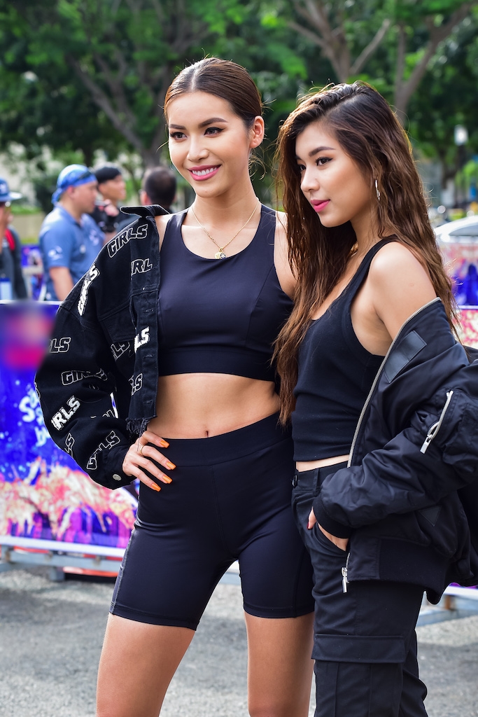 Siêu mẫu Minh Tú xuất hiện với trang phục thể thao khỏe khoắn nhưng vẫn khoe khéo những đường nét gợi cảm.