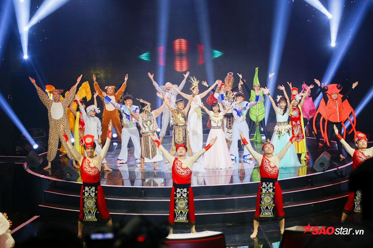 Đã hết mình với với tiết mục đơn ca nhưng các thí sinh của team Giang - Hồ vẫn có thừa năng lượng để vừa hát vừa đọc rap, nhảy múa, trình diễn catwalk và tung hứng trong màn trình diễn độc đáo “có một không hai”. Nếu Phi Hùng khoe nốt cao thánh thót, Trọng Vũ - Trọng Sáng hòa giọng ăn ý thì Thanh Hằng - Phương Trúc - Gia Hân - Quỳnh Như lại cuốn khán giả vào đoạn “chorus” gây nghiện.