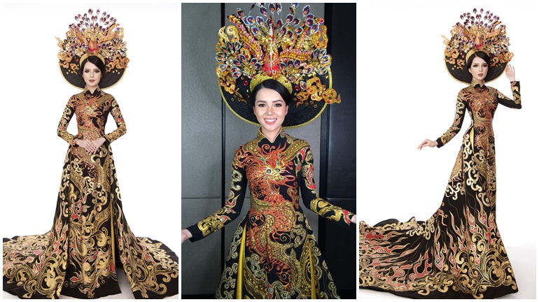 Ngoài việc được lên ý tưởng cầu kỳ, bộ trang phục còn mất hơn 1 tháng do hai người thợ làm hoàn toàn bằng tay để tạo nên sự tinh xảo cho bộ trang phục. Thiết kế đuôi 3 lớp của bộ áo dài được NTK Tuấn Hải chia sẻ đây là kỹ thuật may đầu tiên xuất hiện tại Việt Nam.