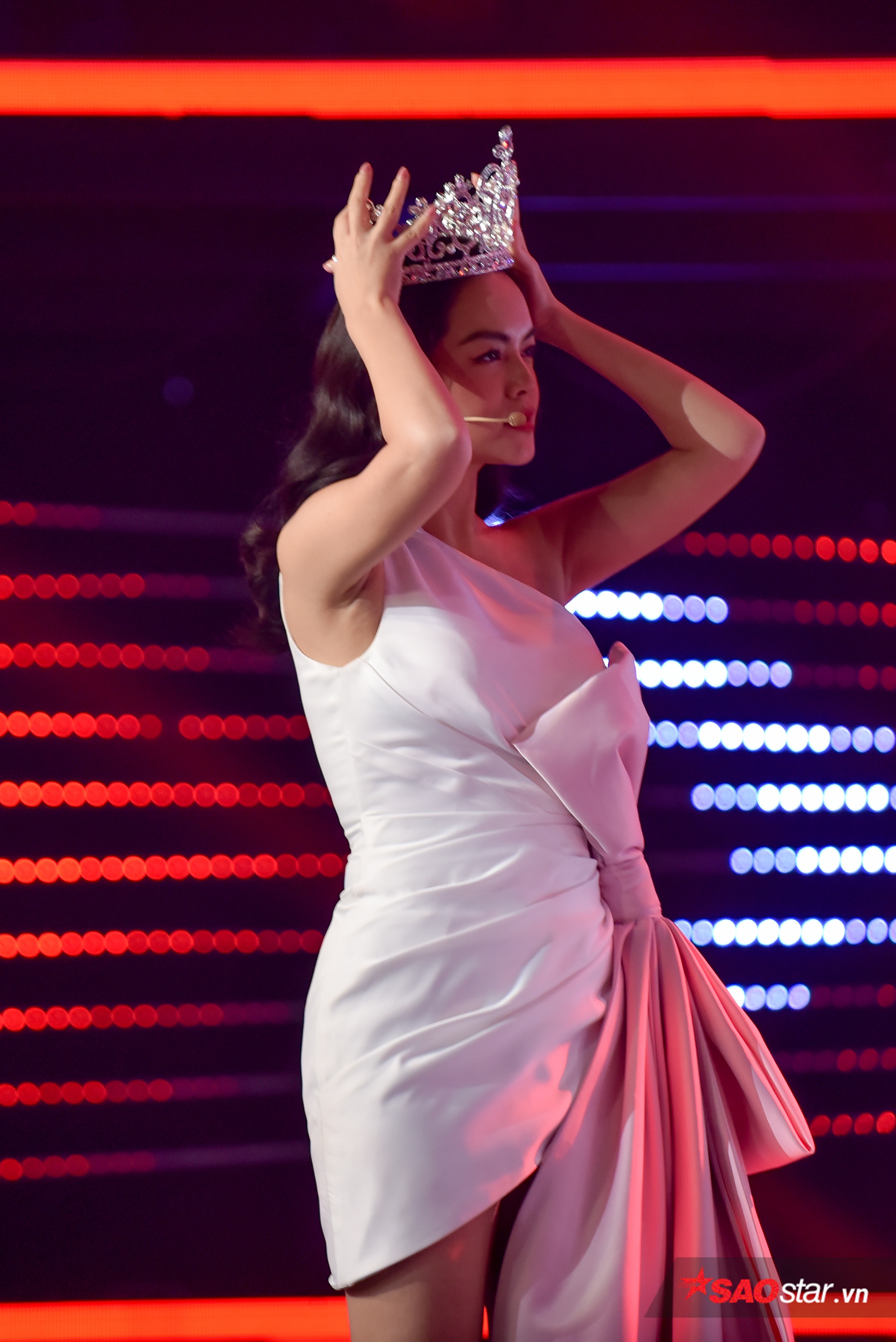 … thì bất thình lình, Phạm Quỳnh Anh mang chiếc vương miện “siêu to khổng lồ” lên sân khấu Giấu mặt.