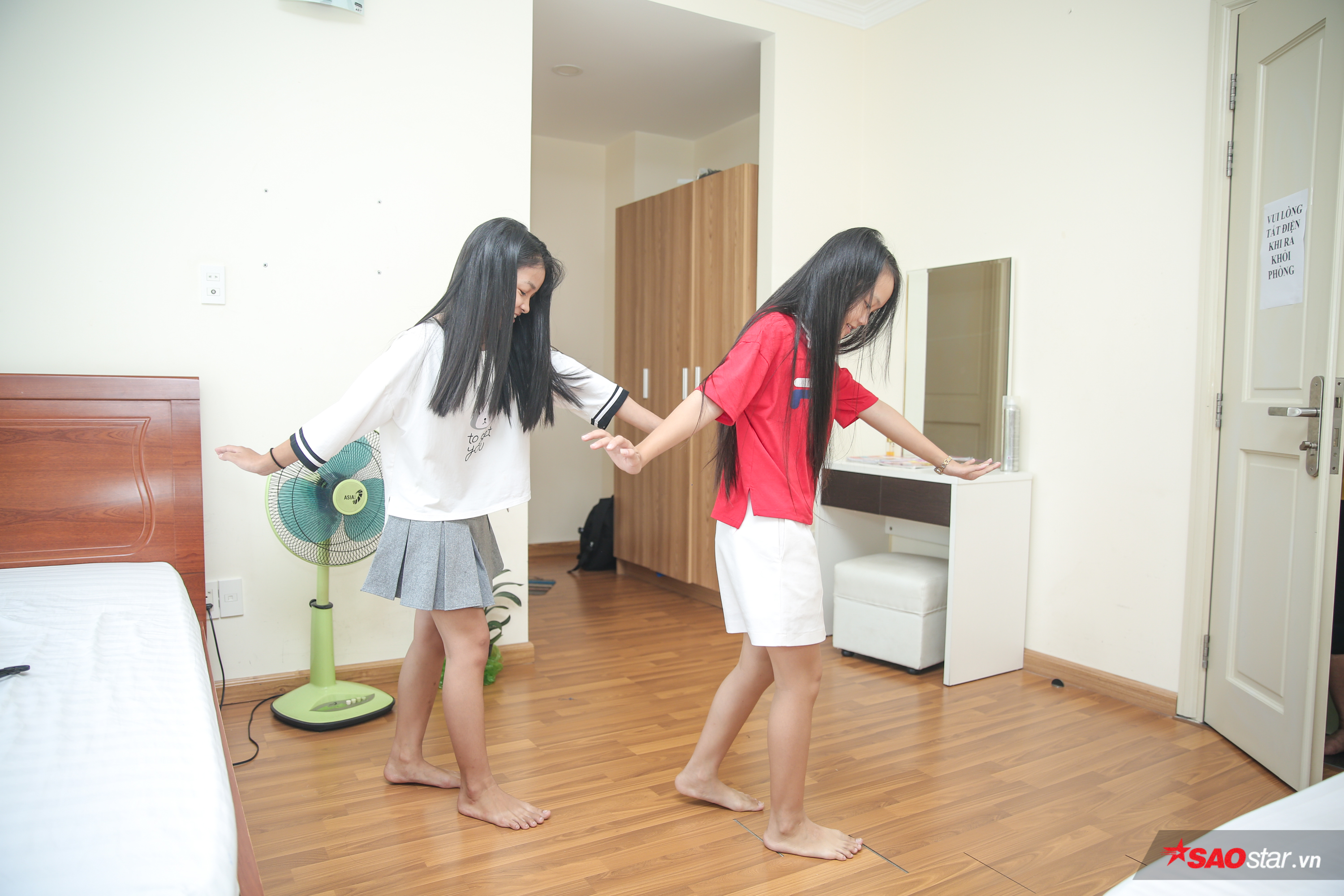 Mẹ Hải Yến tranh thủ cho con gái tập luyện cho vòng thi Đối đầu.