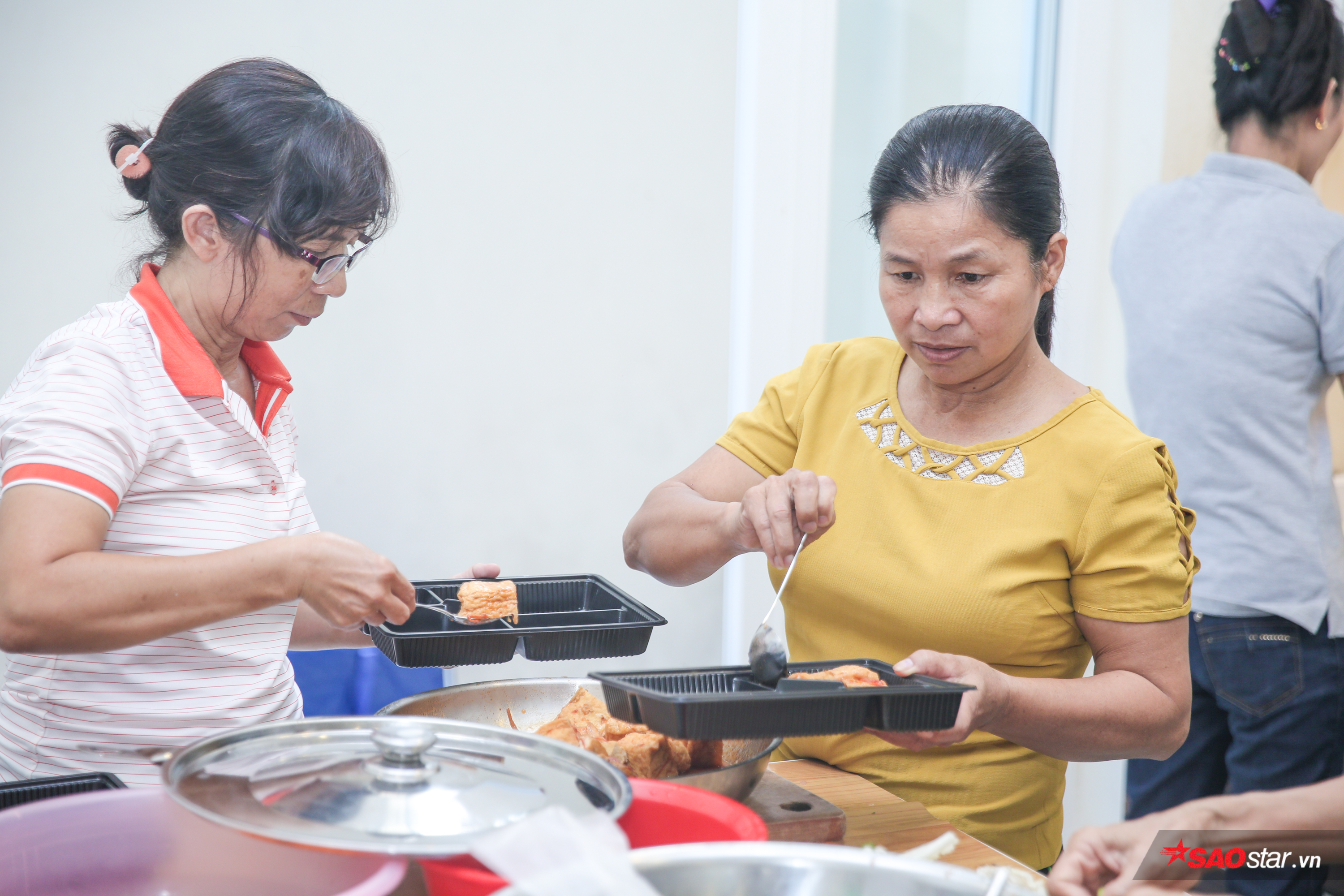 Các phụ huynh chuẩn bị bữa ăn trưa cho dàn thí sinh nhí.