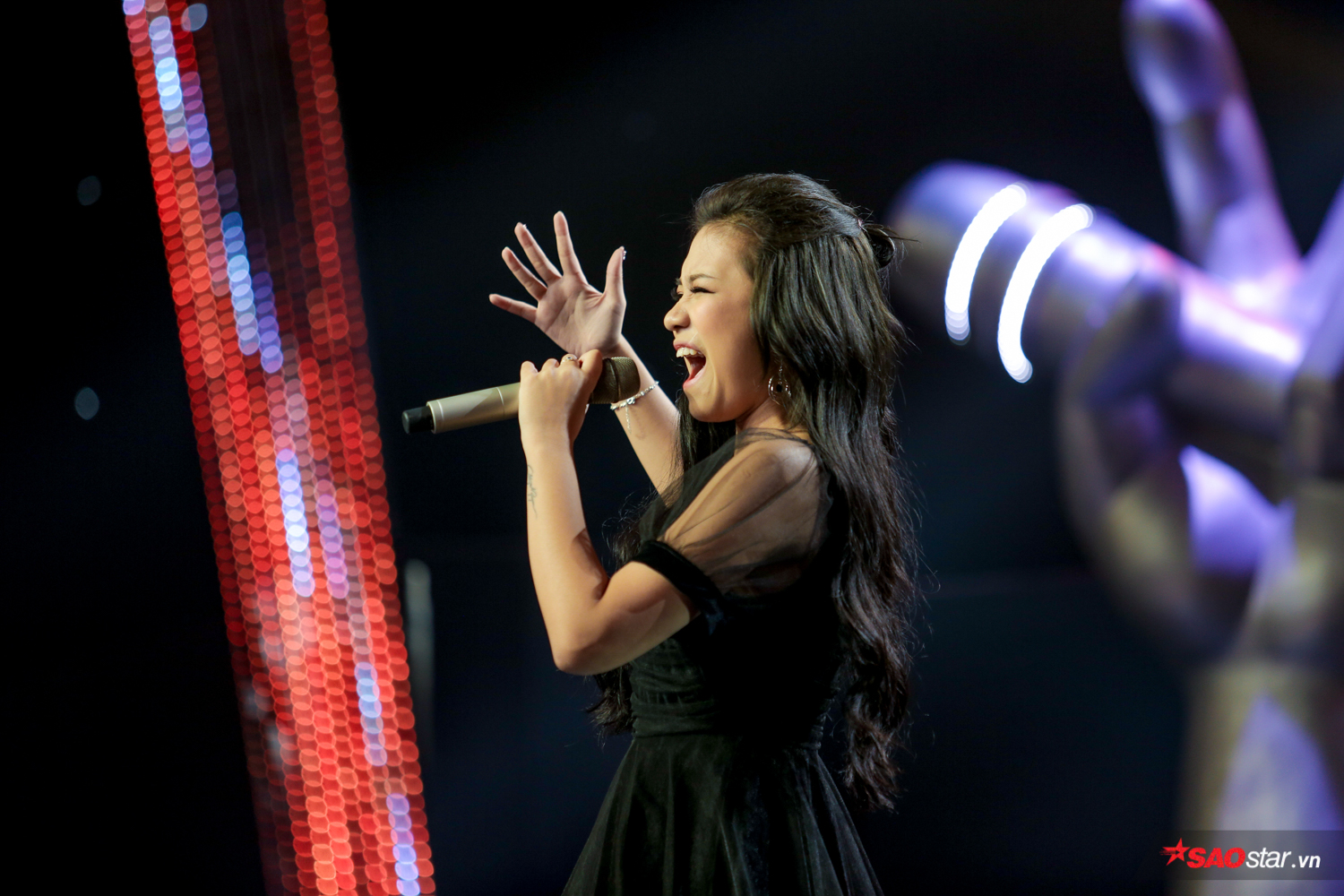 HLV Tuấn Ngọc chia sẻ: “Em hát rất hay, rất có triển vọng trong cuộc thi lần này”. Ngay khi nghe được nhận xét của chú Tuấn Ngọc, cô bé 16 tuổi rơm rớm nước mắt trong sự xúc, hai tay cầm mic mà cứ rung rung vì hạnh phúc.