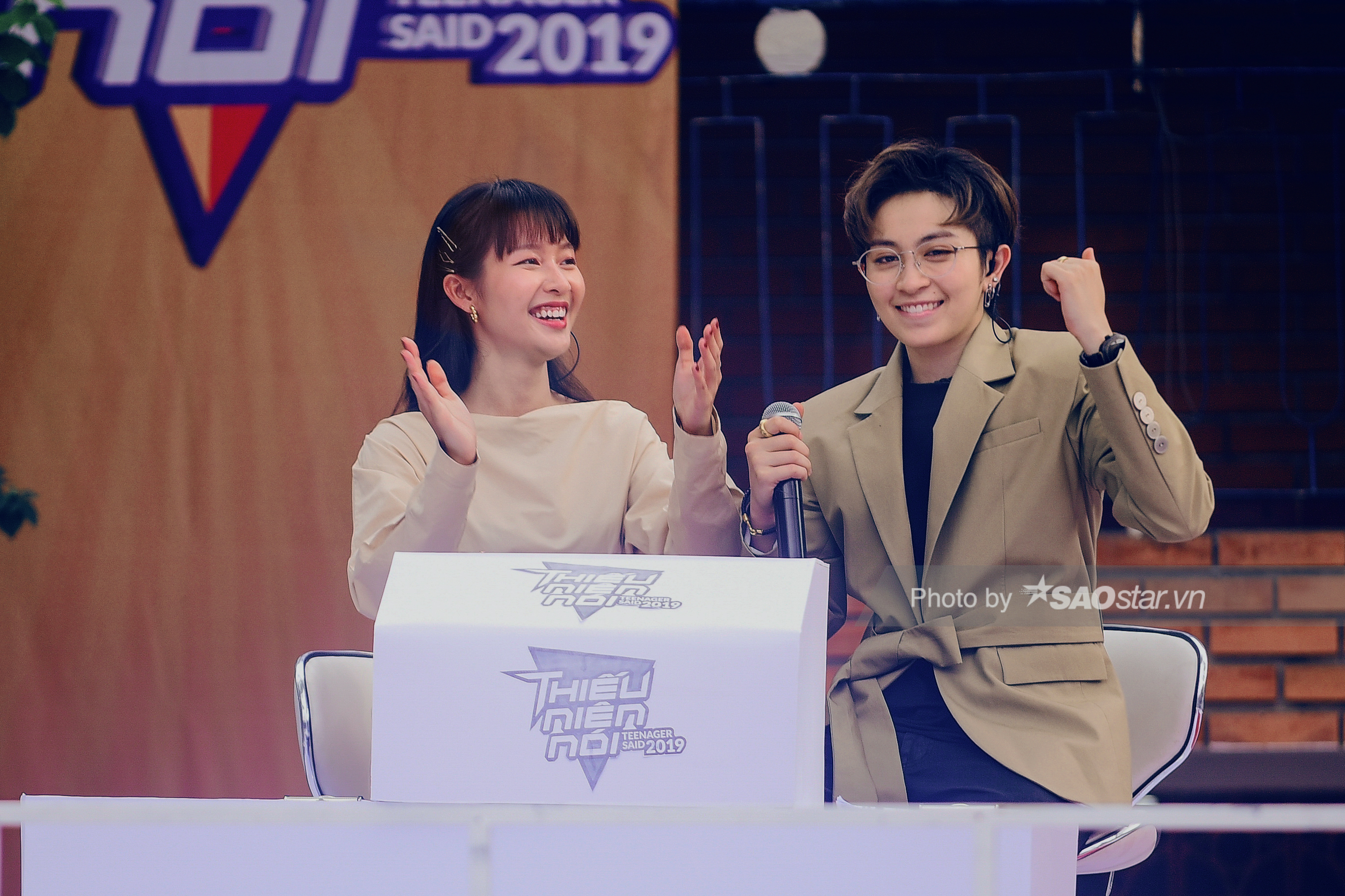 Có thể thấy, xuyên suốt khoảng thời gian Xuân Hoàng đứng trên bục dũng khí, Khả Ngân không những chăm chú lắng nghe, theo dõi mà còn cười tươi đồng cảm, ủng hộ.