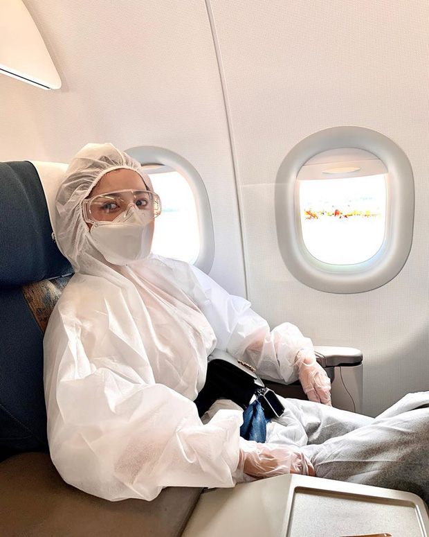Đi kèm là dòng chú thích: “Corona tránh xa cô Chi ra. Hôm nay Chi đã có 1 trải nghiệm có 1-0-2 trong cuộc đời. Đi bay mà ai cũng nhìn luôn á. Nhưng các bạn biết hông, sân bay hiện được xem là nơi rủi ro lây nhiễm virus rất cao. Nên nếu điều kiện cho phép, Chi nghĩ các bạn có thể trang bị cho mình 1 bộ đồ bảo hộ như thế này để đảm bảo an toàn khi bay và di chuyển tại sân bay nhé”.