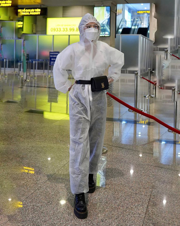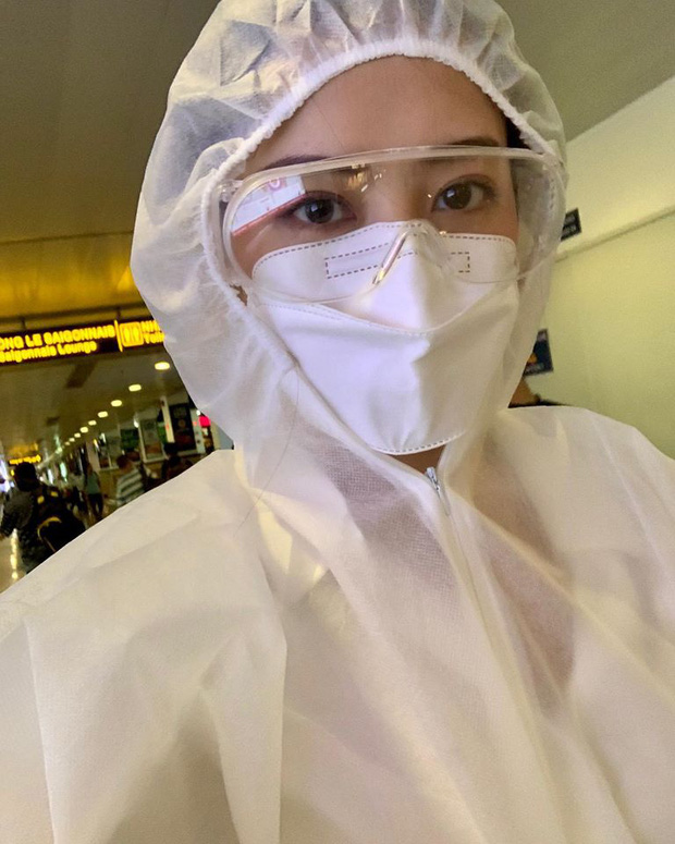 Chi Pu là nghệ sĩ đắt show, thường xuyên phải đi công tác dù trong mùa dịch. Mới đây, trên trang cá nhân, Chi Pu vừa đăng tải hình ảnh được che chắn cẩn thận khi mặc đồ phòng hộ cùng găng tay, kính mắt, khẩu trang che kín mặt ở sân bay.