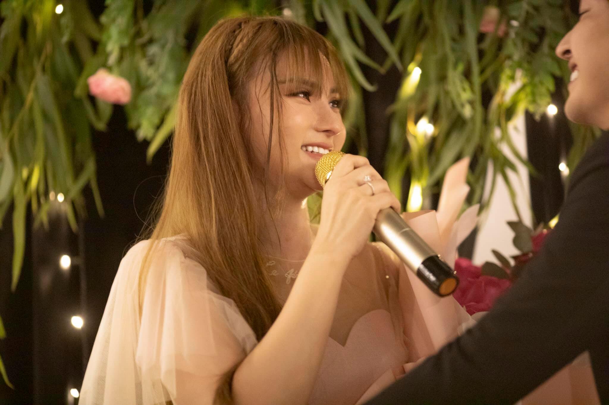 Cảm ơn anh vì đã cầu hôn em cho em được cảm nhận hạnh phúc và niềm tin vào tình yêu mà anh đã dành cho em! Anh hãy nghe tiếng cười của con đi! Con vui hạnh phúc là em cũng vui và hạnh phúc theo! Yêu anh rất nhiều“.