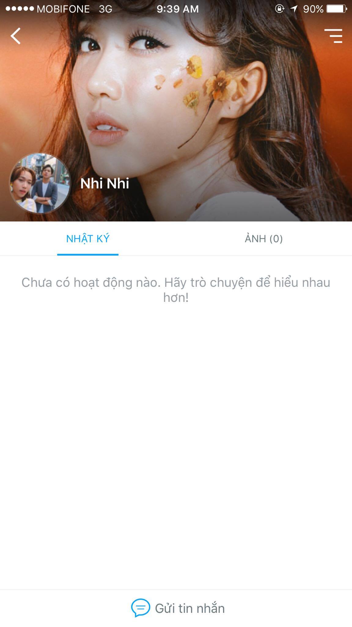 Hình đại diện trên một ứng dụng điện thoại của Diệu Nhi vẫn để hình cô và Anh Tú.