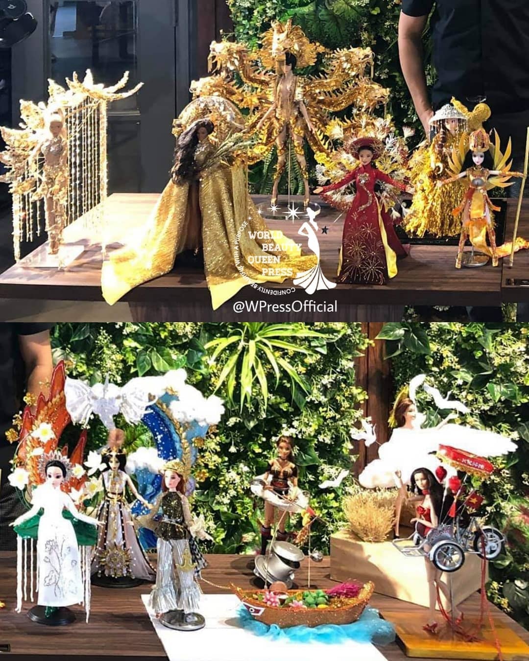 Tại đây, các bản vẽ National Costume cũng được hiện thực hóa trên phiên bản búp bê, giới thiệu trước ban giám khảo. Sau khi những hình ảnh đầu tiên của buổi thi được hé lộ, dân mạng nóng lòng chờ đợi sự xuất hiện của mẫu thiết kế “Bàn thờ”.