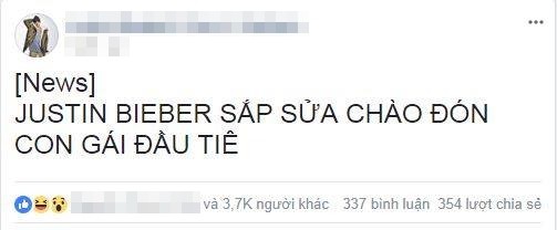 Mới đây, trên mạng xã hội, nhiều người hâm mộ không khỏi hốt hoảng khi một fanpage về Justin Bieber bất ngờ chia sẻ thông tin giọng ca sinh năm 1994 sắp sửa chào đón con gái đầu lòng. Sau nhiều năm xa cách, Justin và Selena chính thức quay trở lại bên nhau. Những hình ảnh cực kỳ tình tứ, mùi mẫn của cặp đôi thường xuyên xuất hiện trên báo chí.