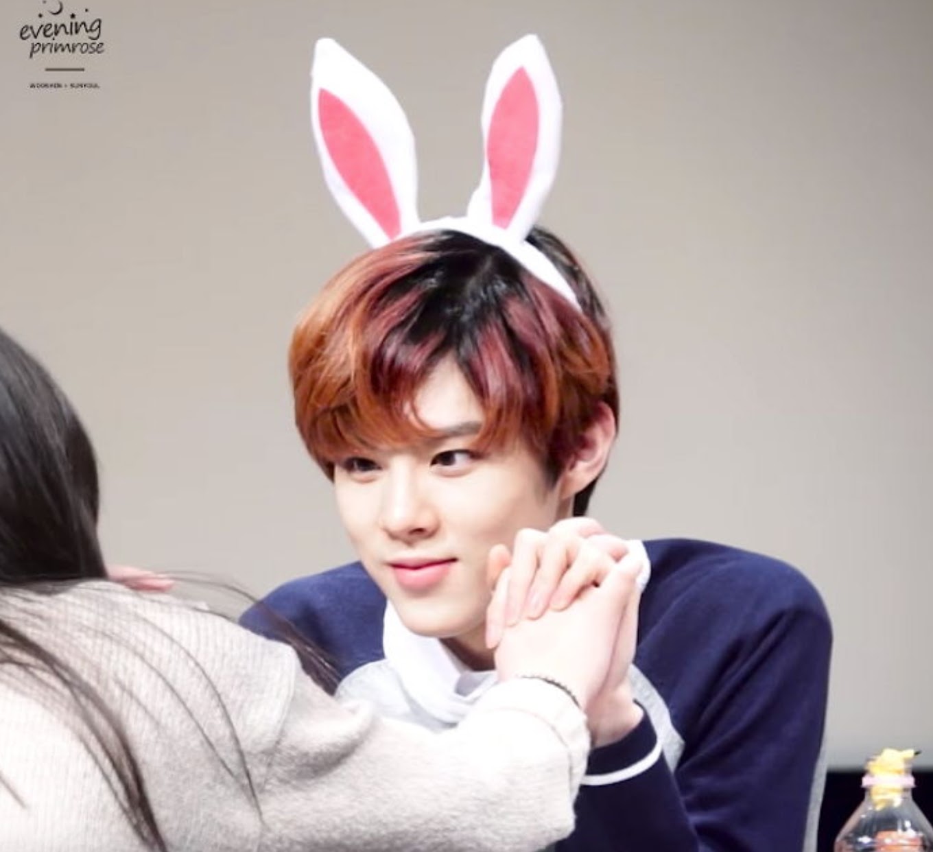 Trong buổi fan meeting, Kim Wooseok thân thiện nắm và thậm chí cả ngoắc tay fan nữa.