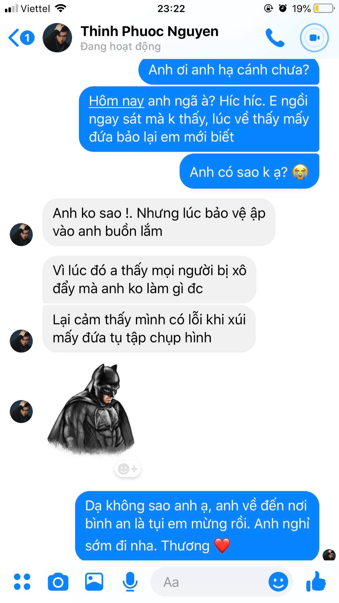 Việc Noo Phước Thịnh hết mực cưng chiều và yêu thương các fan của mình có lẽ không còn là chuyện lạ lẫm gì với khán giả. Mới đây, một đoạn chat giữa anh và người hâm mộ được công khai càng khiến nhiều người yêu quý nam ca sĩ. Dù bị ngã xước hết tay chân nhưng điều Noo quan tâm nhất vẫn là chuyện các fan của anh bị xô đẩy. Nam ca sĩ thành thật bày tỏ: “Lúc bảo vệ ập vào anh buồn lắm vì nhìn thấy mọi người bị xô đẩy mà không làm gì được, lại cảm thấy có lỗi khi xúi mấy đứa tụ tập chụp hình“.