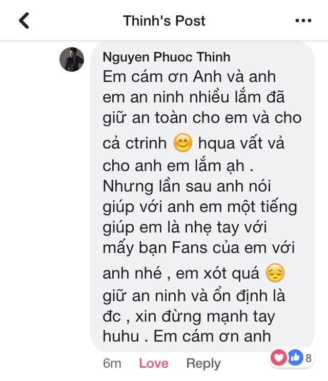 Noo Phước Thịnh nhờ bảo vệ nhẹ tay với fan của mình.