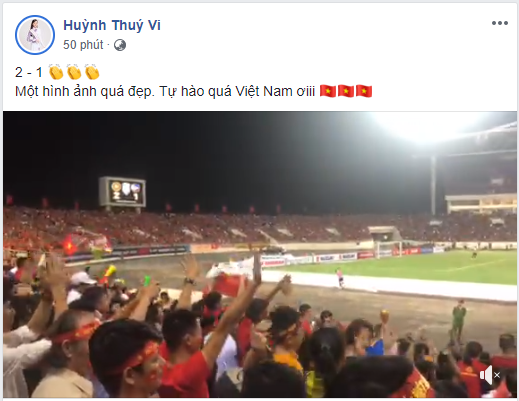 Người đẹp Huỳnh Thúy Vi chia sẻ khoảnh khắc đẹp tại sân vận động Mỹ Đình.
