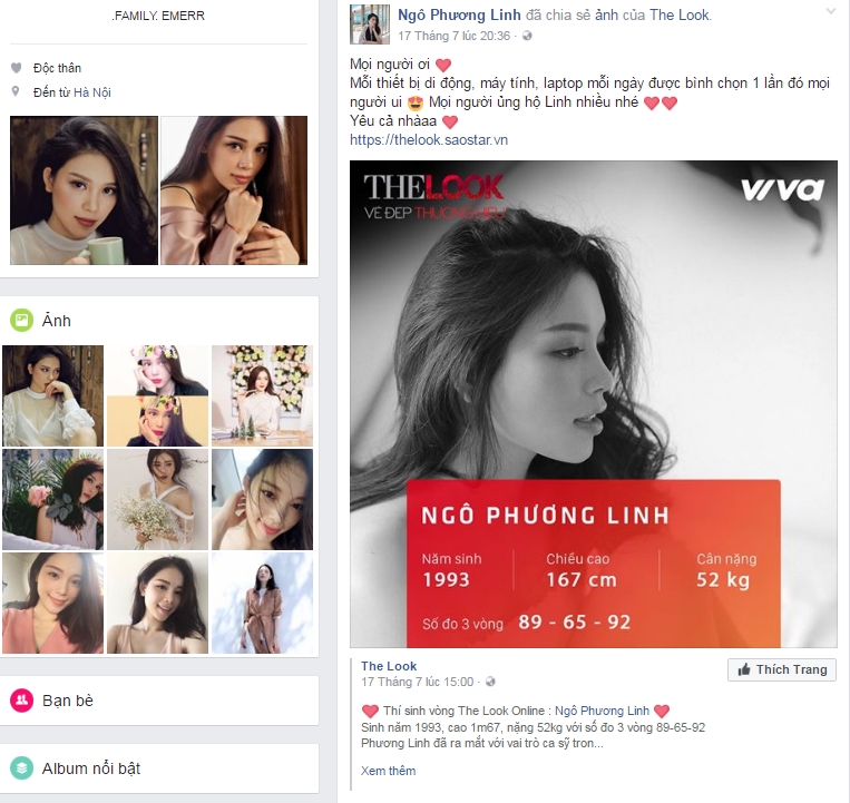 Từ hơn 50 hồ sơ chất lượng nhất, từ ngày 17/07 đến 23/07/2017, độc giả có thể bình chọn cho những thí sinh được yêu thích nhất tại www.thelook.saostar.vn.