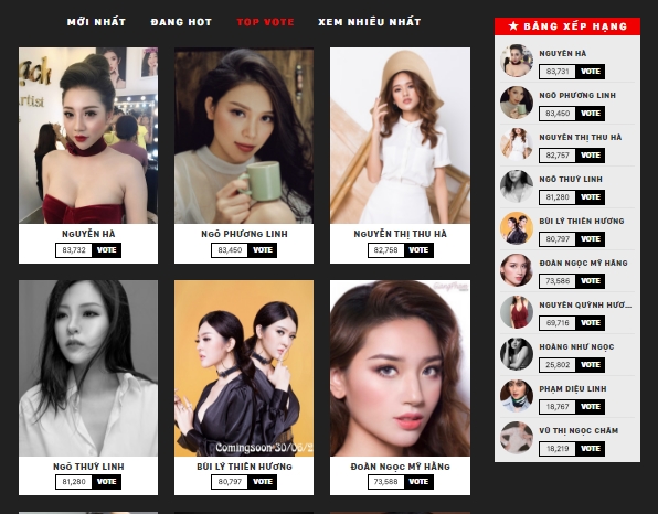 Những thí sinh đang dẫn đầu cuộc bình chọn tính đến 21h ngày 19/7.