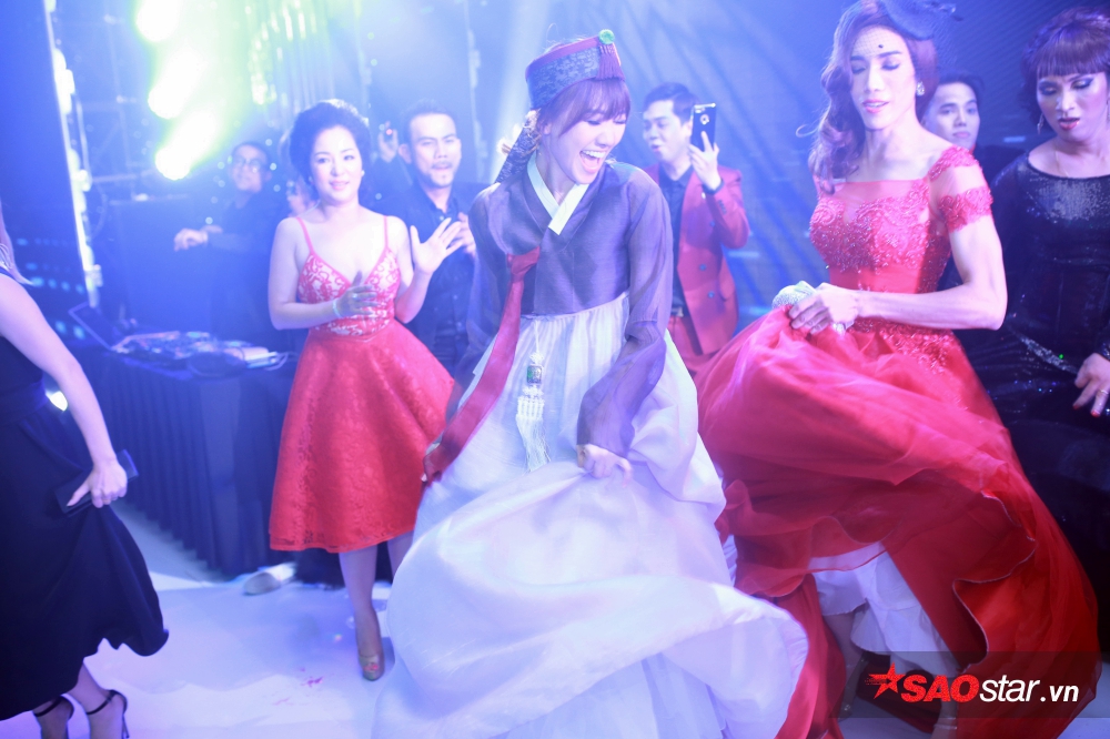 Đúng 18 giờ ngày 25/12, lễ thành hôn của Hari Won và Trấn Thành đã diễn ra tại một trung tâm tiệc cưới sang trọng ở quận 1, TP HCM. Trong suốt buổi tiệc, cặp đôi đã có những khoảnh khắc vô cùng đáng nhớ bên bạn bè, người thân. Đặc biệt, không giống các cặp đôi khác lập tức ra về sau khi kết thúc hôn lễ, Hari Won và Trấn Thành còn nán lại để “quẩy” cùng mọi người.