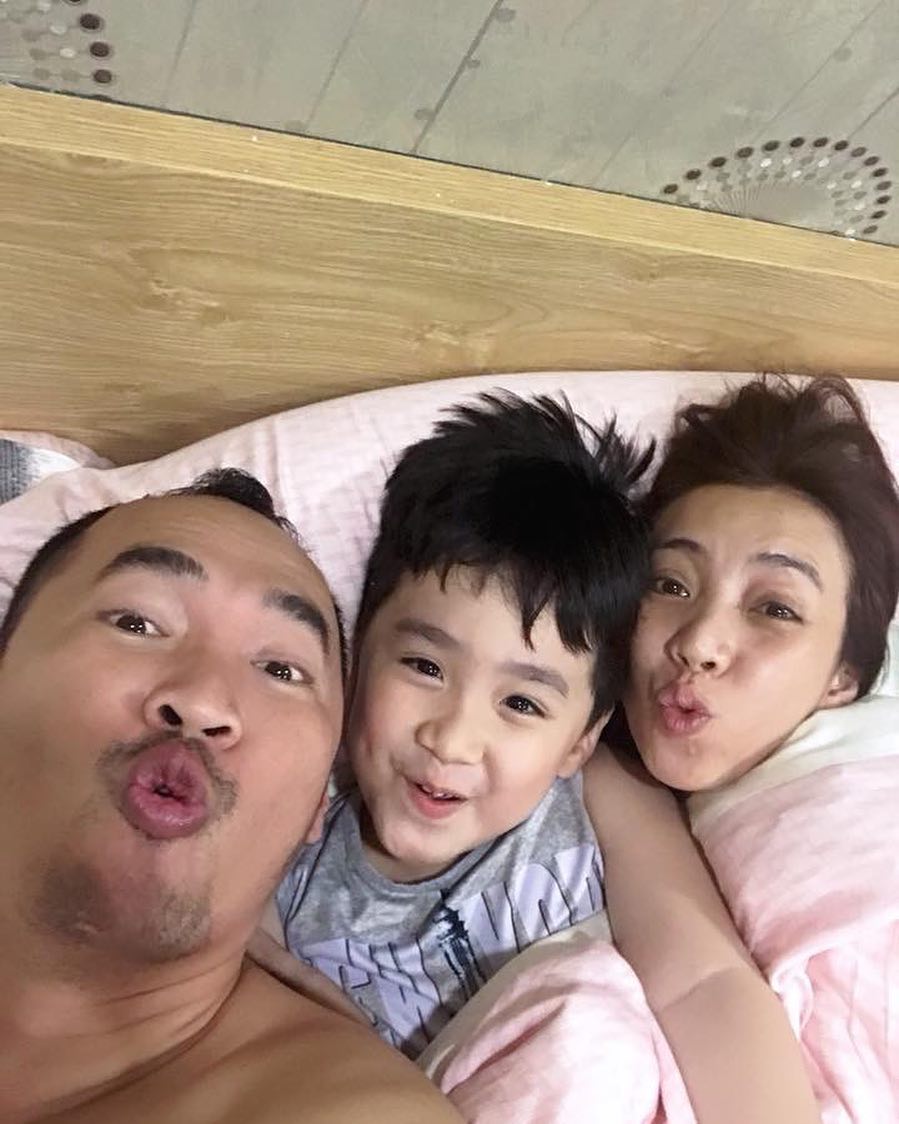 Tiến Luật khoe body nhắng nhít bên con và vợ yêu.