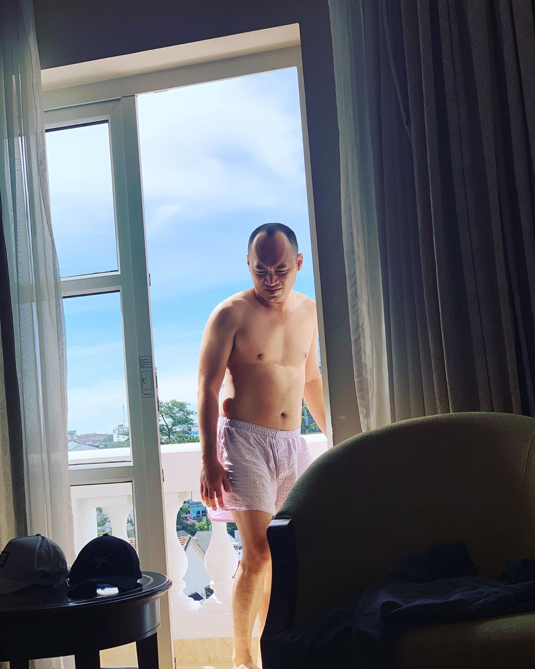 Vừa rồi, trên trang cá nhân của mình nữ danh hài chia sẻ khoảnh khắc chụp lén Tiến Luật khoe body duyên dáng kèm chú thích hài hước: “Sáng sớm mở mắt ra hú hồn má ơi. Nhìn ngon vãi”.