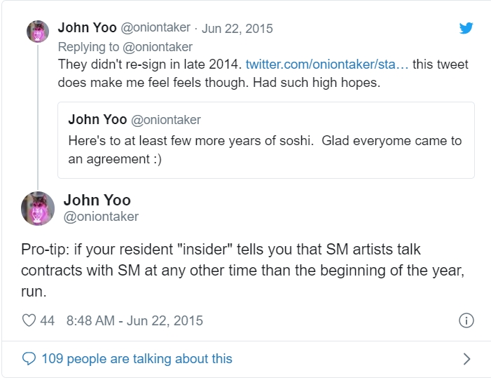 Nếu điều này là đúng, toàn bộ câu chuyện đã lý giải cho tuyên bố của cô vào ngày 30/9/2014:“Tôi rất hào hứng về các sự kiện với người hâm mộ của chúng tôi, cho đến khi bất ngờ được thông báo bởi công ty và 8 người còn lại rằng cho đến hôm nay, tôi không còn là thành viên của nhóm nữa. Tôi đã bị hủy hoại - sự ưu tiên và tình yêu của tôi là để được làm một thành viên SNSD. Nhưng chẳng có lý do nào chính đáng, tôi bị buộc rời nhóm”.