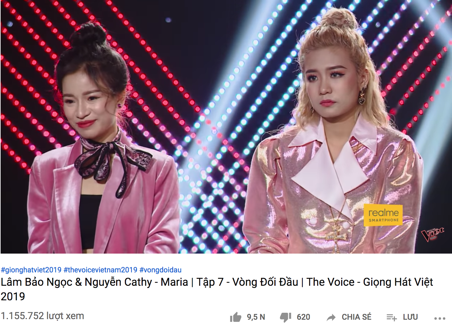Phần trình diễn đối đầu của cặp đôi Lâm Bảo Ngọc và Nguyễn Cathy đã lọt vào danh tiết mục triệu view The Voice 2019 sau khi lên sóng.
