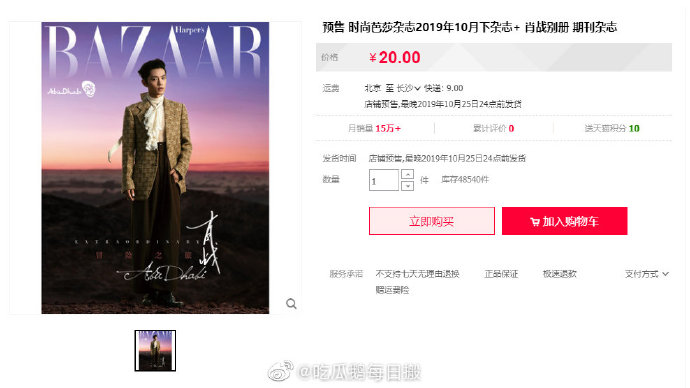 Mới đây, tập san tạo hình Ducktail của Tiêu Chiến chụp cho tạp chí thời thượng Harper's Bazaar được tung ra và lượng tiêu thụ trước mắt đã đạt được 150 ngàn quyển. Với giá của mỗi quyển là 20 NDT (gần 70 ngàn đồng) cùng với phí vận chuyển 9 NDT, tổng doanh thu hiện tại đã đạt hơn 3 triệu NDT (10 tỷ đồng). Chỉ trong vòng 14 phút đầu tiên mở bán, lượng tạp chí có sự xuất hiện của Tiêu Chiến đã phá vỡ 100 ngàn bản.