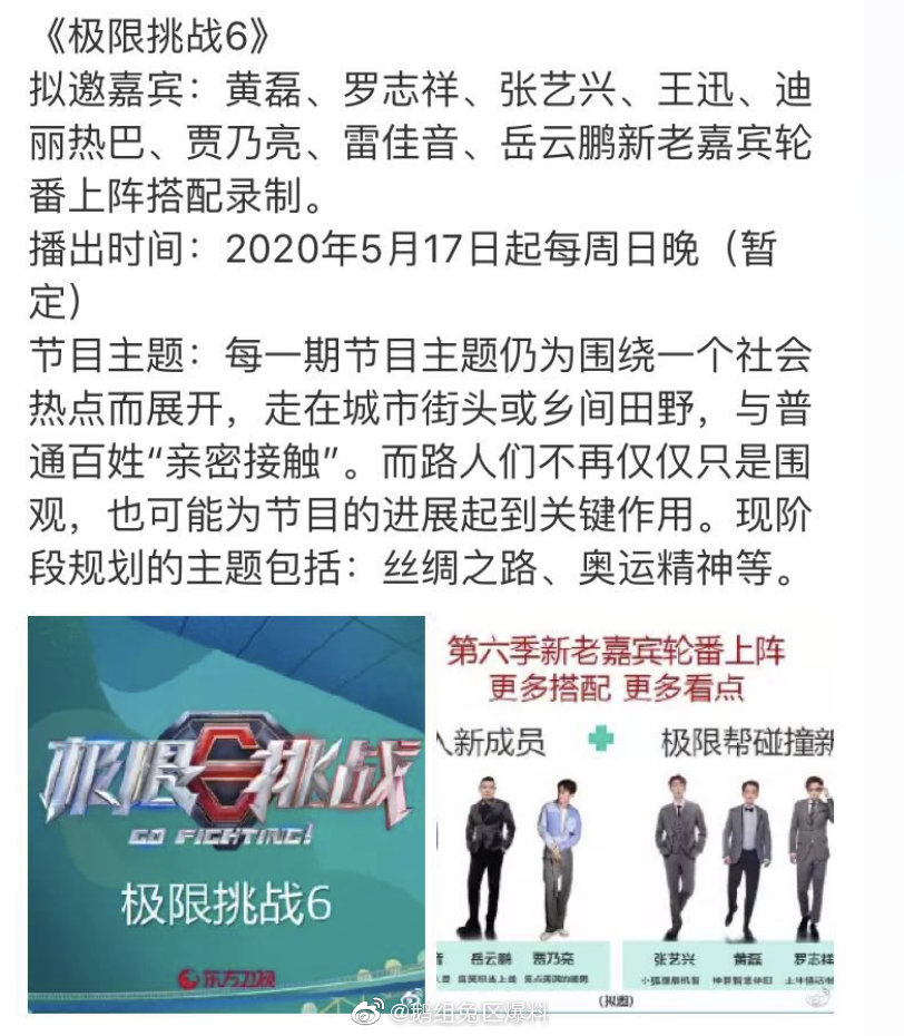 Sau tin đồn dàn thành viên cố định của show Keep Running mùa 8 thì hôm nay đến lượt chương trình Thử thách cực hạn cũng gặp phải trường hợp tương tự. Trước mắt, theo tin tức của một blogger có lượng theo dõi lớn cho biết: Dàn thành viên cố định của Thử thách cực hạn mùa 6 đã được xác định. Ngoại trừ những thành viên cũ thì mùa mới còn có sự tham gia của những lưu lượng nổi tiếng hiện nay như Đặng Luân, Lưu Vũ Ninh, Tiêu Chiến.