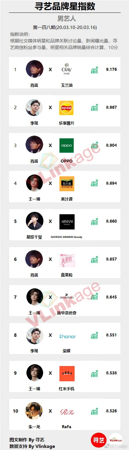 Bảng xếp hạng thể hiện khả năng ảnh hưởng, thu hút người tiêu dùng của minh tinh đối với từng sản phẩm, thương hiệu. Khi Tiêu Chiến gặp khó khăn, có thương hiệu gỡ bỏ quảng cáo, thay thế nam diễn viên nhưng cũng có nhãn hàng lựa chọn đồng hành cùng anh chàng. Để không làm thương hiệu thất vọng vì đã tin tưởng Tiêu Chiến, rất nhiều fan hâm mộ đã tận lực mua sản phẩm để ủng hộ thần tượng.