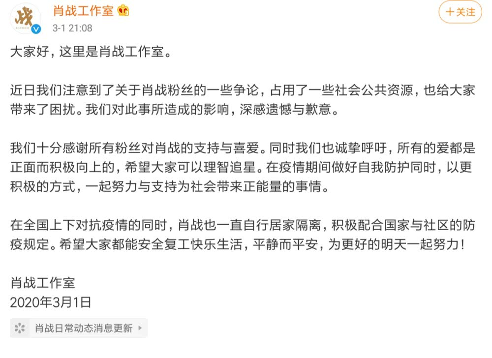 Tiếp sau đó, vào cuối tháng 2 đầu tháng 3 năm nay, fan Tiêu Chiến “ra tay” report trang AO3, thành công chọc giận cộng đồng mạng. Dư luận tiến hành tẩy chay đồng loạt các sản phẩm do Tiêu Chiến làm đại diện cũng như đánh giá 1 sao các phim có sự tham gia của Tiêu Chiến. Khi mọi chuyện cũng đang dần lắng xuống thì một số fan hâm mộ của Tiêu Chiến ra sức chuộc lỗi, mong bù đắp phần nào đó cho thần tượng. Một trong số đó chính là giúp Tiêu Chiến đua top, tích lũy nhân khí.