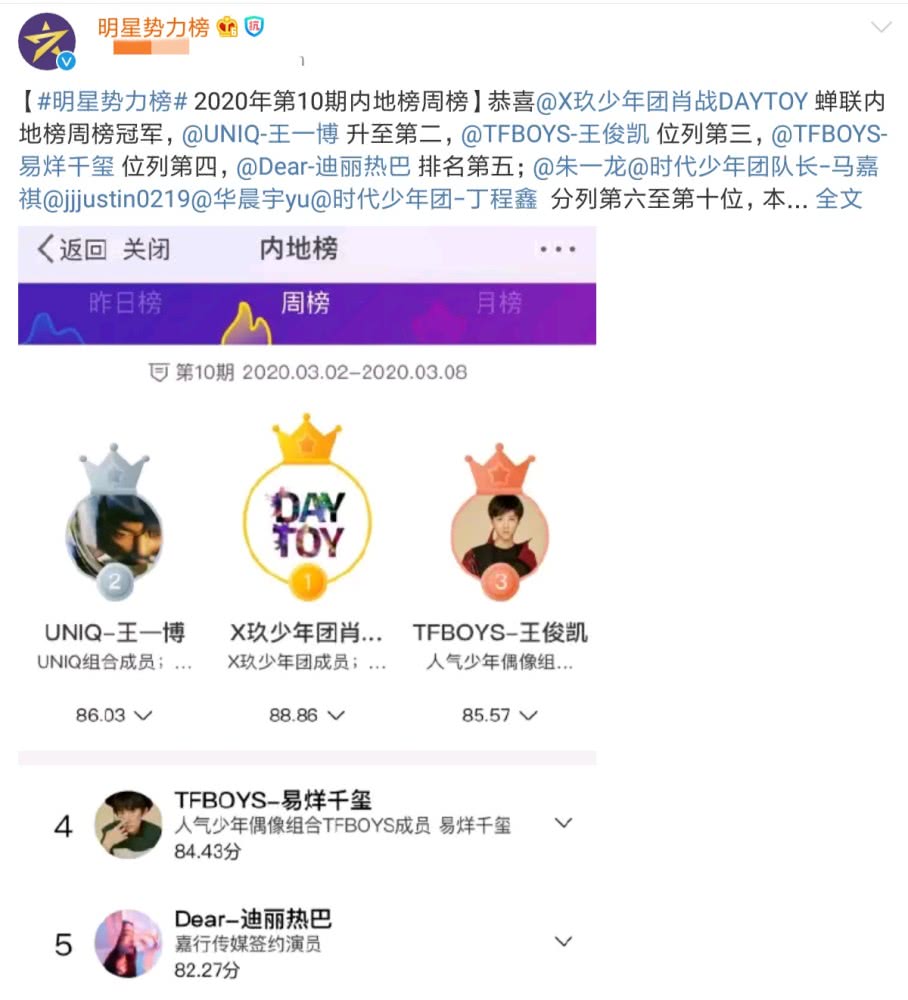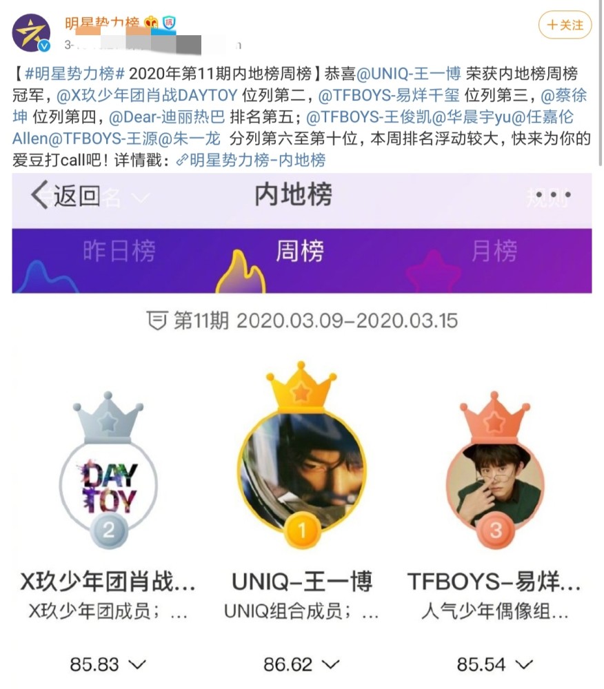 Trong chuyện này, ngược lại với Tiêu Chiến thì Vương Nhất Bác lại là người có lợi nhất. Nếu như trước đây Vương Nhất Bác chỉ có thể ở vị trí thứ 2,3 thì lần này đã trực tiếp nhảy lên vị trí đầu bảng.