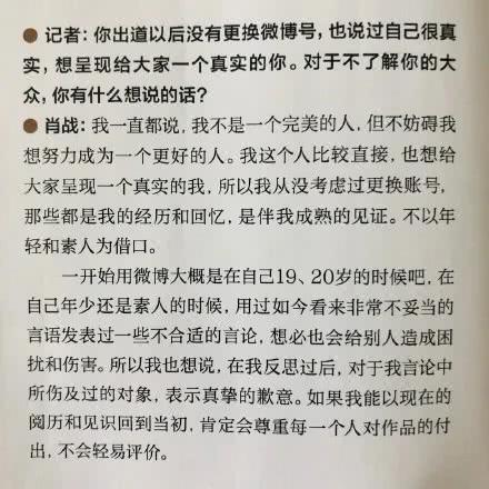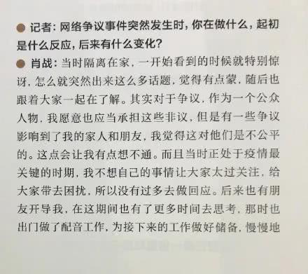 Trong lần phỏng vấn này, những vấn đề hot mà mọi người quan tâm đều được Tiêu Chiến lên tiếng giải đáp. Điều mà dư luận muốn biết nhất chính là quá trình chuyển biến tư tưởng của Tiêu Chiến trong khoảng thời gian này (sau chuyện 227). Trải qua trận bão táp của hàng loạt rắc rối khi fan report trang AO3, Tiêu Chiến trở thành tiêu điểm trên mạng, bị không ít người tẩy chay. Đối mặt với những tranh luận, Tiêu Chiến có cảm giác “Có chút mê muội”, sau đó cũng đi tìm hiểu cùng với mọi người.