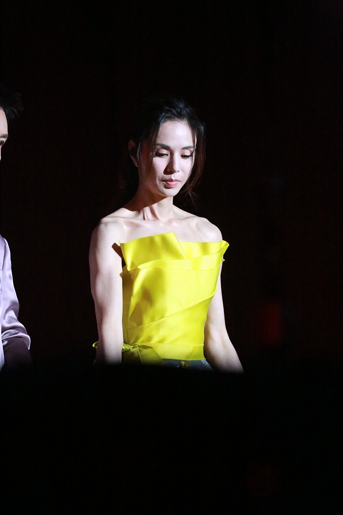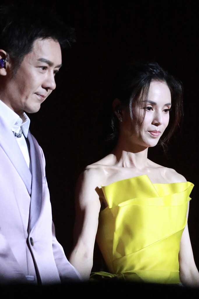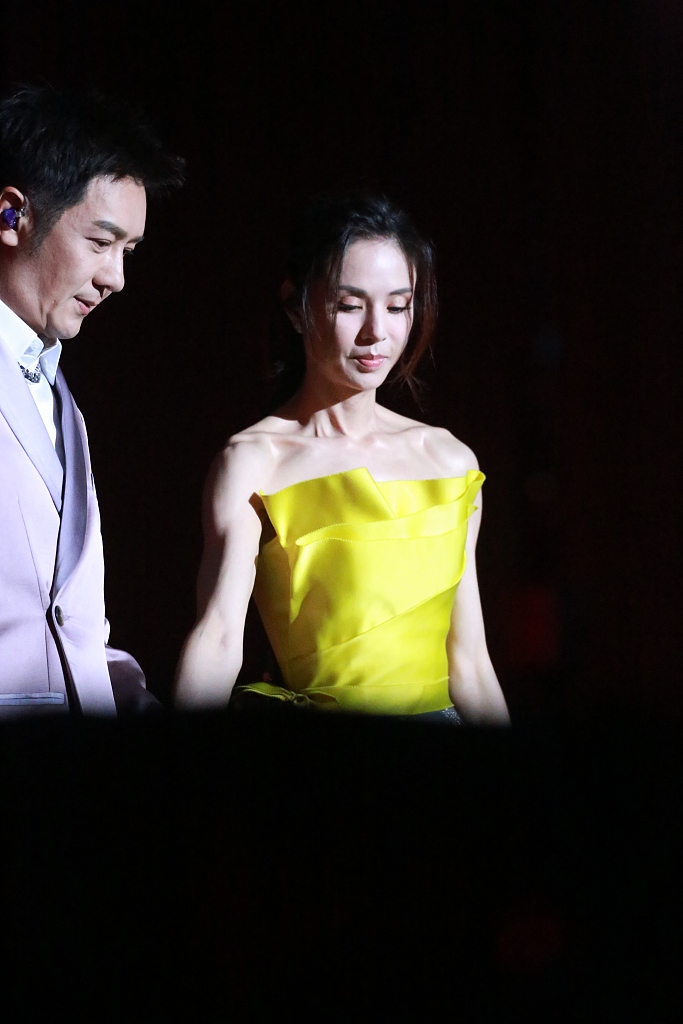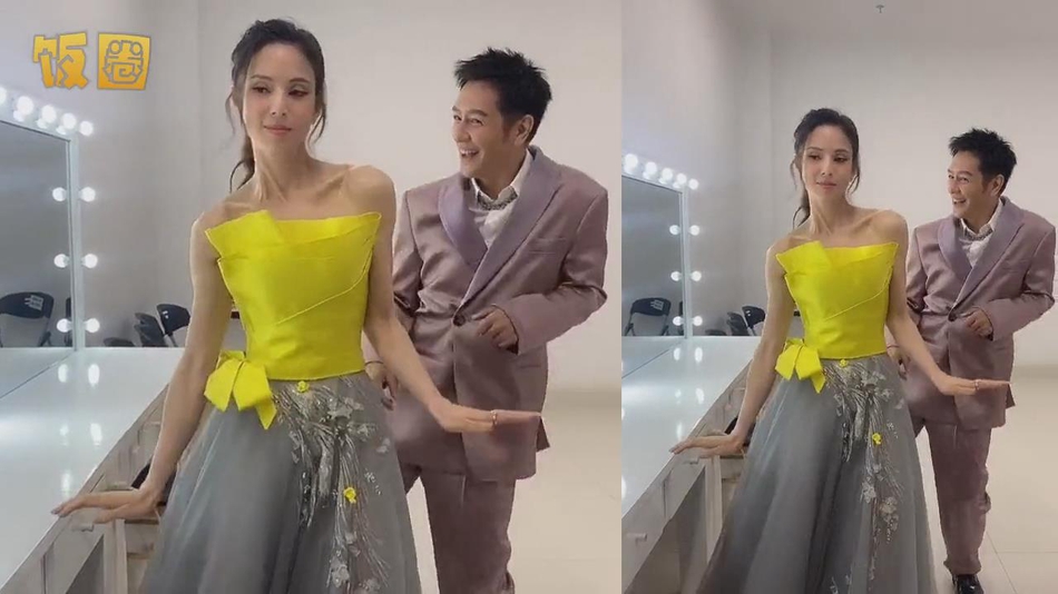 Nữ nghệ sĩ sinh năm 1973 Lý Nhược Đồng mặc váy dạ hội để lộ vai và xương quai xanh gợi cảm với cách trang điểm tinh tế vô cùng thu hút. Sự tương tác đáng yêu và tinh nghịch của hai người họ thực sự đã khiến rất nhiều cư dân mạng nhớ đến hình ảnh ở bộ phim Thiên long bát bộ.