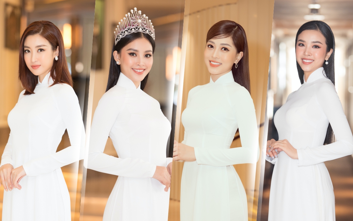 Hoa hậu Việt Nam 2016 - Đỗ Mỹ Linh, Hoa hậu Việt Nam 2018 Trần Tiểu Vy, á hậu Phương Nga, á hậu Thúy An hẹn nhau diện áo dài trắng đẹp dịu dàng khi cùng góp mặt tại sự kiện khởi động cuộc thi Hoa hậu Việt Nam 2020. Thông qua màu trắng tinh khôi, các nàng hậu muốn gửi lời tri ân đến những thiên thần áo trắng là đội ngũ y bác sĩ cũng như toàn thể những anh hùng thầm lặng khác đã ngày đêm làm việc, luôn cống hiến hết mình.