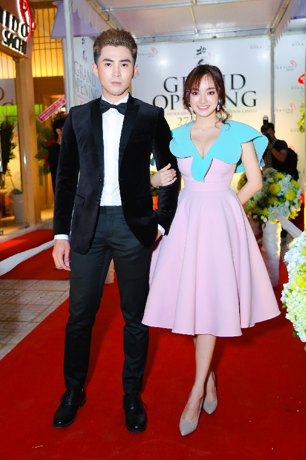 Tối 27/5, Trương Quỳnh Anh và Tim tay trong tay xuất hiện ở sự kiện khai trương chính nhánh mới của một hệ thống nhà hàng sushi nổi tiếng Nhật Bản tại TP.HCM. Cả hai cùng diện trang phục tông trắng, đồng thời tỏ ra rất vui vẻ bên nhau.