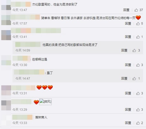 Bức ảnh của Châu Kiệt Luân cùng bà xã ngắm biển vô tình thu hút lượng chú ý của hàng triệu fan, tạo nên làn sóng bình luận trên Weibo: “Anh ấy thật lãng mạn, đem lời hát mình viết thực hiện hết cho Côn Lăng”; “Tình cảm của họ thật tốt đẹp”; “Kiệt Luân viết ra cái gì, anh đều thực hiện được cho vợ”…