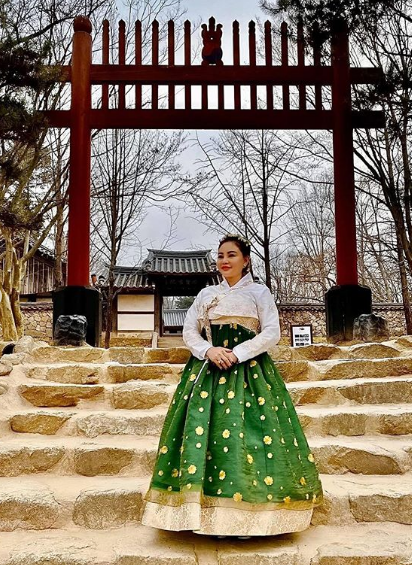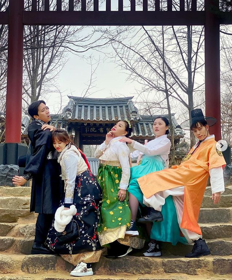 Tạo dáng gây cười vậy thôi, các thành viên đều đã kịp có cho mình 1 bức hình khoe dáng cùng trang phục hanbok giữa tiết trời mùa xuân của Hàn Quốc.