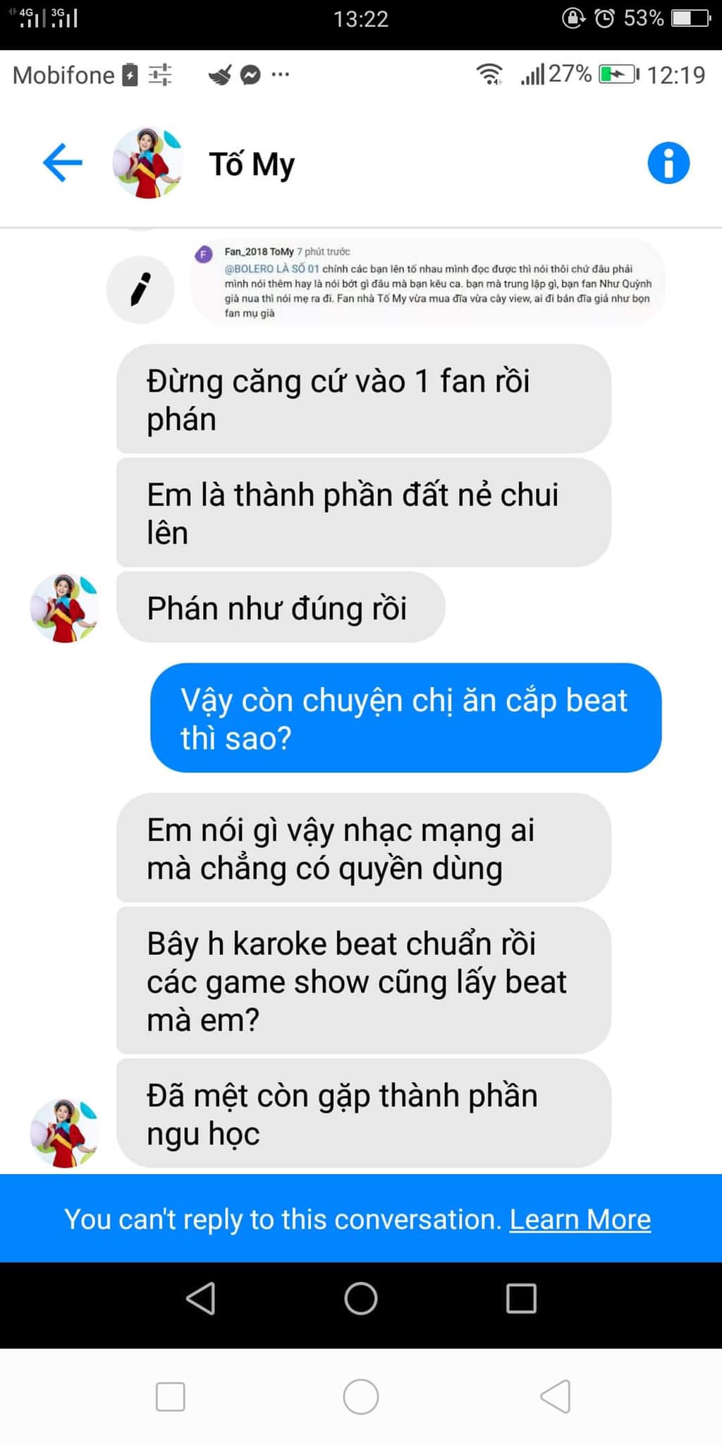 Nữ ca sĩ nói thêm: “Nếu ai đã tiếp xúc với My đều sẽ hiểu rằng cách hành xử của My đối với mọi người xung quanh như thế nào và câu từ My thường sử dụng ra sao? My chưa bao giờ sử dụng những từ ngữ “khiếm nhã” và lối hành xử “thô thiển” như thế này cả. Và một điều đặc biệt nữa là My ko bao giờ có thói quen xem cũng như trả lời tin nhắn những nick lạ trên facebook“.